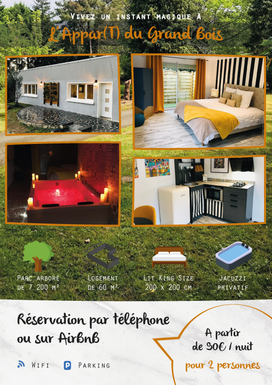Création de flyer recto-verso pour le gîte l’Appar(T) du Grand Bois qui propose de la location courte durée à Soucelles, près d’Angers.