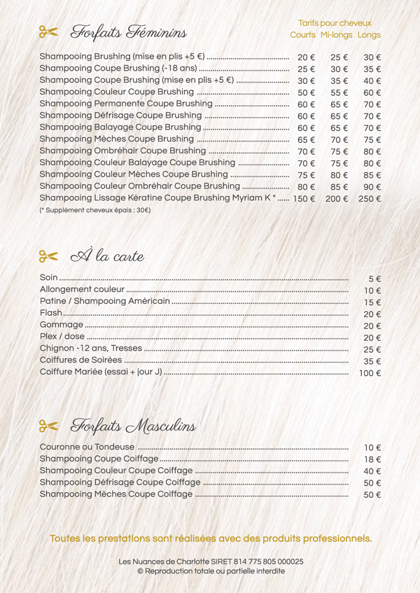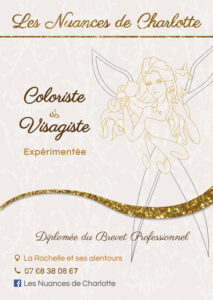 Coiffeuse professionnelle, coloriste et visagiste à La Rochelle et ses environs, Charlotte souhaitait harmoniser sa communication existante et d’avoir des supports cohérents avec une même charte graphique.